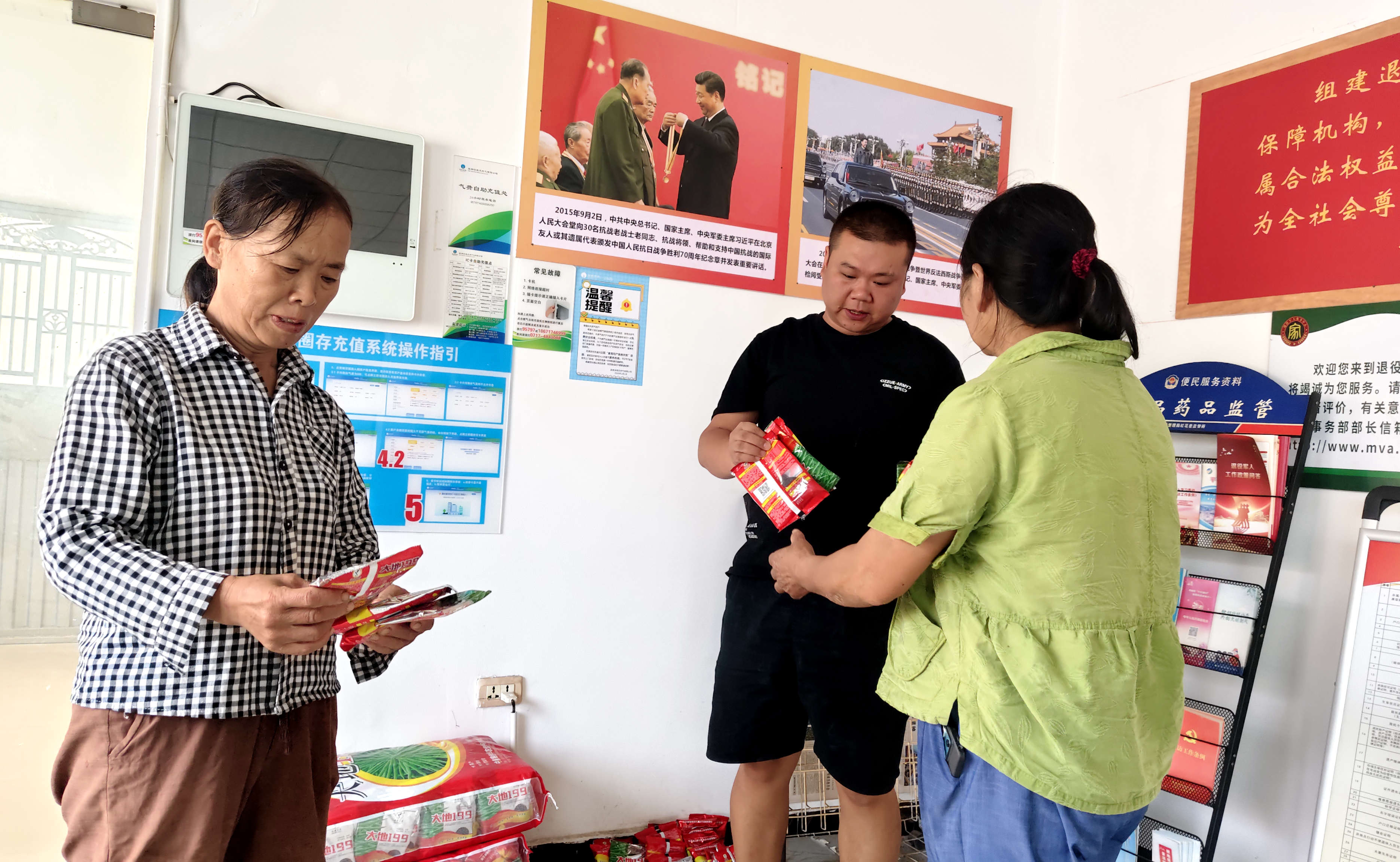 一袋袋金黃飽滿的油菜種子與肥料被有序分發(fā)到村民手中