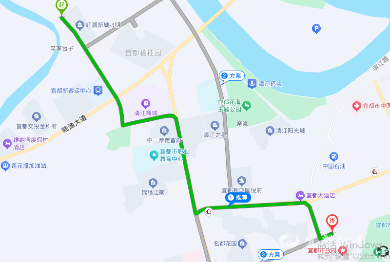 下車位置:(起點)宜都市梁山街和市民中心路交匯口