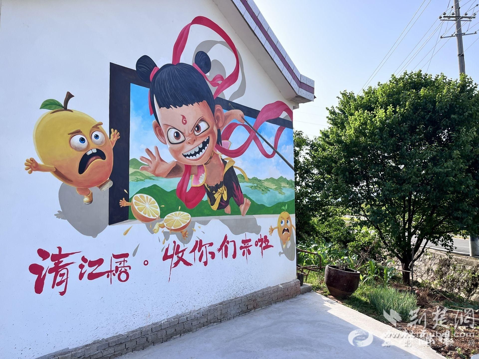 除了哪吒、太乙真人等形象,他還把高壩洲鎮(zhèn)四大特產(chǎn)“醬草柑茶”融入畫面,使墻繪不僅具有藝術(shù)價(jià)值,更成為推廣農(nóng)產(chǎn)品的窗口,吸引眾多游客駐足了解。