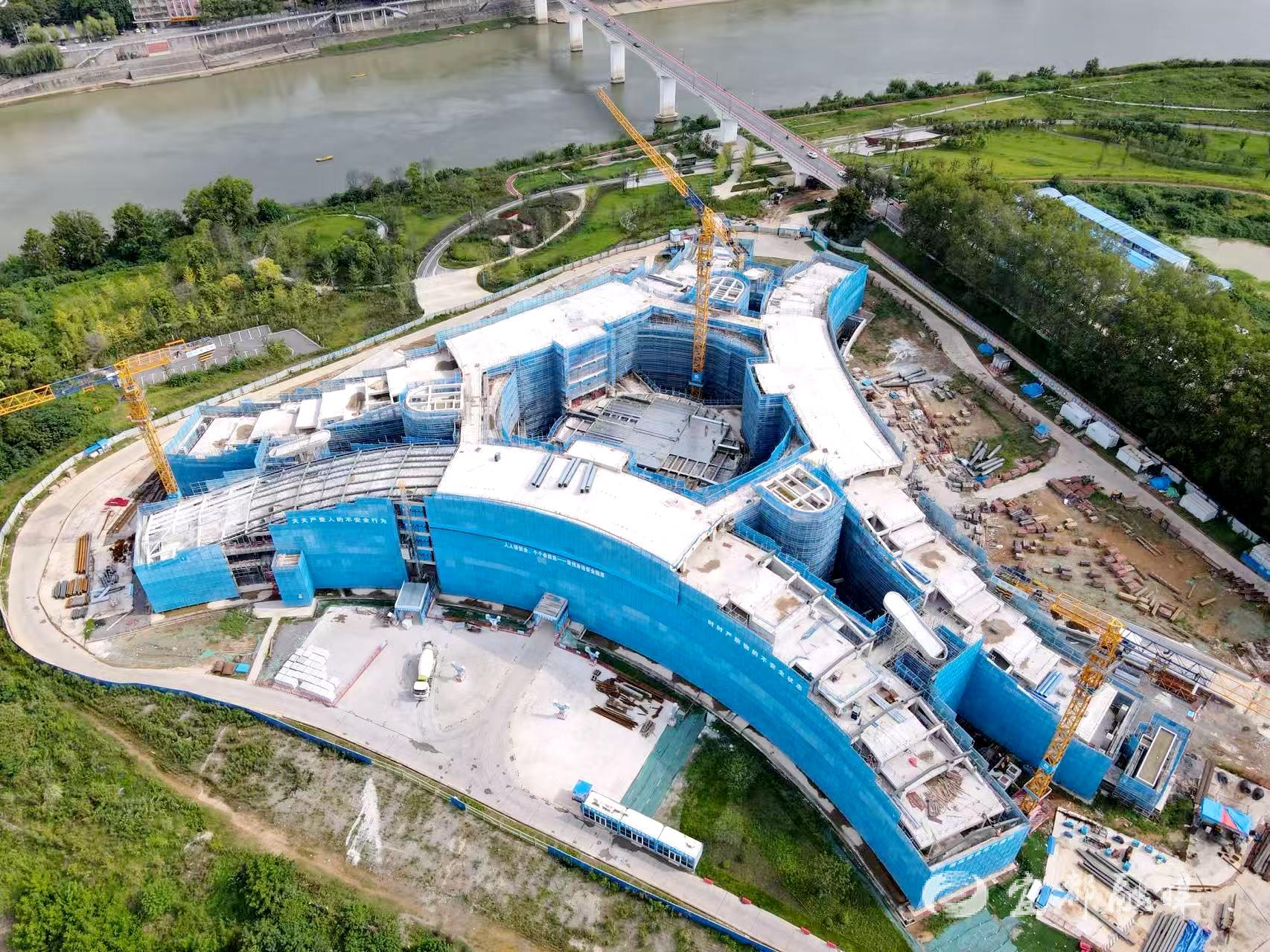 作為已被列入省級工程質(zhì)量觀摩項(xiàng)目的重點(diǎn)工程,鱘龍灣酒店占地49574平方米,規(guī)劃350間客房。項(xiàng)目以“一心一環(huán)三軸三組團(tuán)”理念統(tǒng)領(lǐng)全局,融合“景觀優(yōu)先、兩江視野、文化傳承、地域特色、氣候適應(yīng)與綠色低碳”策略,通過連廊巧妙銜接三棟主樓,在保障功能獨(dú)立的同時實(shí)現(xiàn)整體協(xié)同,體現(xiàn)出高水平的設(shè)計(jì)與施工質(zhì)量。